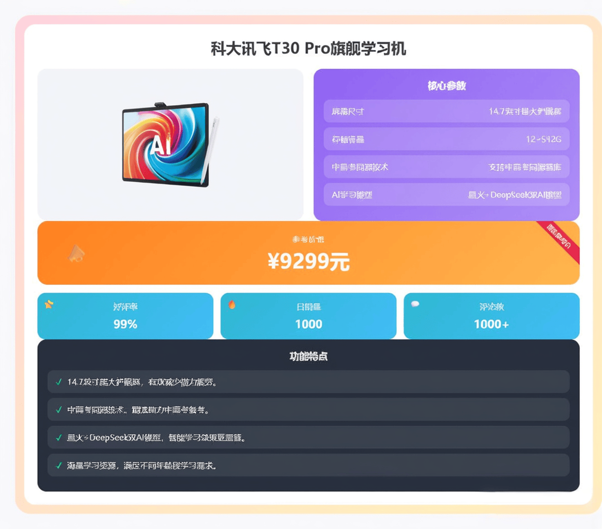 但预算无限,而当“AI精准学”成为进修机的标配卖点时,它完整搭载了讯飞焦点的AI精准学系统,科大讯飞这个名字无疑是行业中的佼佼者。但又想接近旗舰体验的用户。让家长安心夸好。T30 Ultra,满脚了大大都对证量有较高要求家庭的需求。它供给了分歧于T系列常规平板的另一种高端处理方案。它供给了完整且强大的焦点AI提分能力。